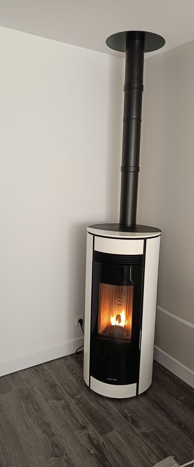 Notre client a opté pour un poêle à granulés Jolly Mec Globo blanc de 6kW, moyen de chauffage performant et économique, avec une programmation facile et une autonomie prolongée en mode silencieux.